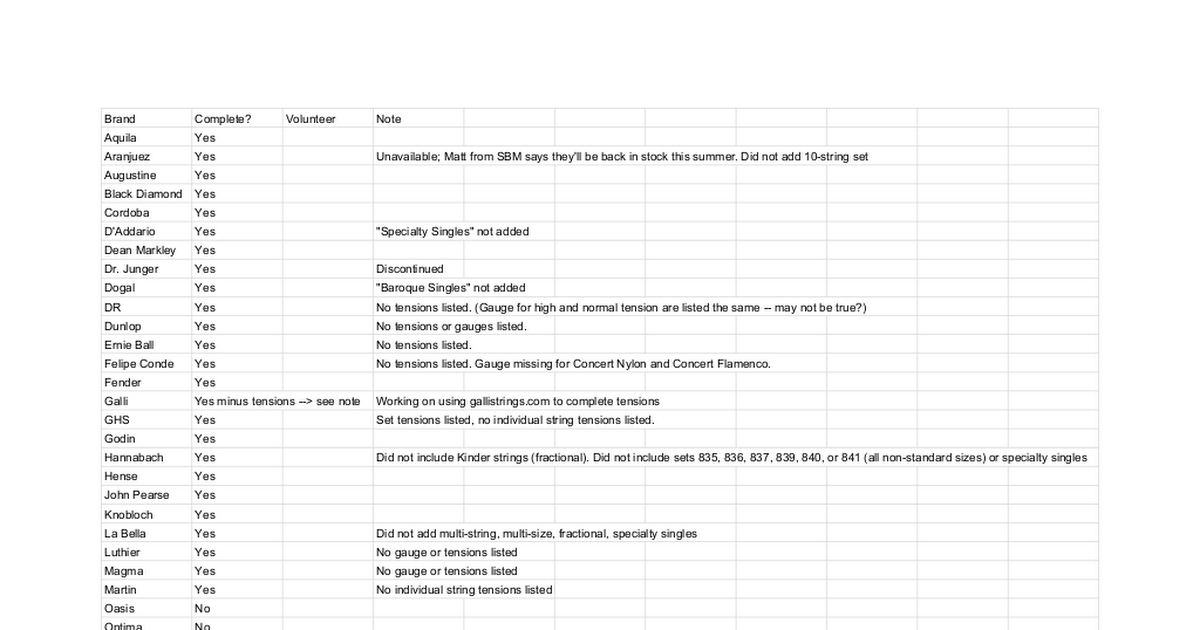 このデータベースは「Ultimate Classical Guitar String Index」と呼ばれ、Google スプレッドシートで公開されています。