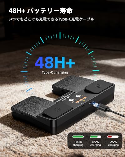普通のページターナーは譜面を送る/戻すの2ペダルしか無いですが、それに加えて音楽の再生と停止のペダルが付いています。