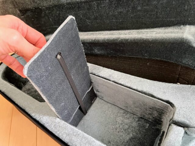 表面板側にはブリッジやネックの形にへこみがあり、楽器がフィットするようになっています。