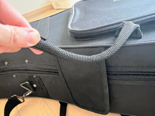 手で持つひもや、ショルダーストラップはスーパーライトケースに比べて細くてヒョロヒョロした印象です: