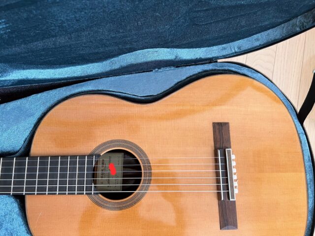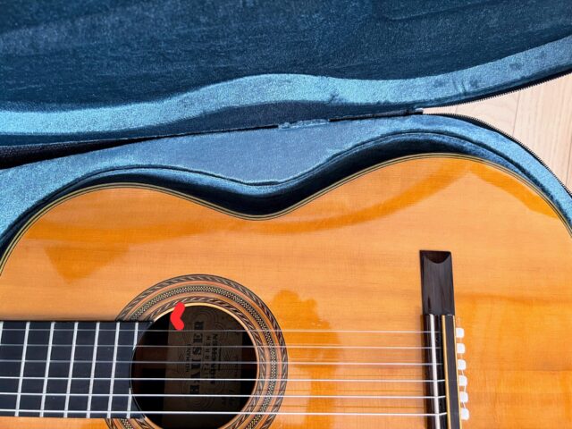 このギターが入っていたのはいわゆる昔ながらの木枠のハードケースであり、かつ購入時に付いていた骨董品です。